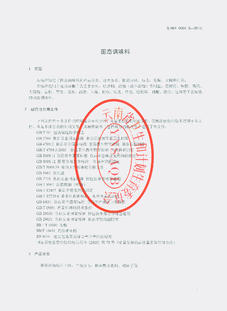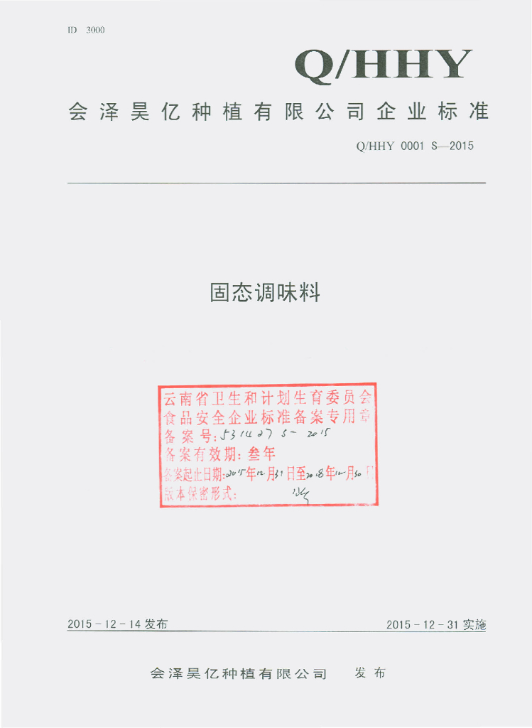 Q/HHY 0001S-2015 会泽昊亿种植有限公司 固态调味料