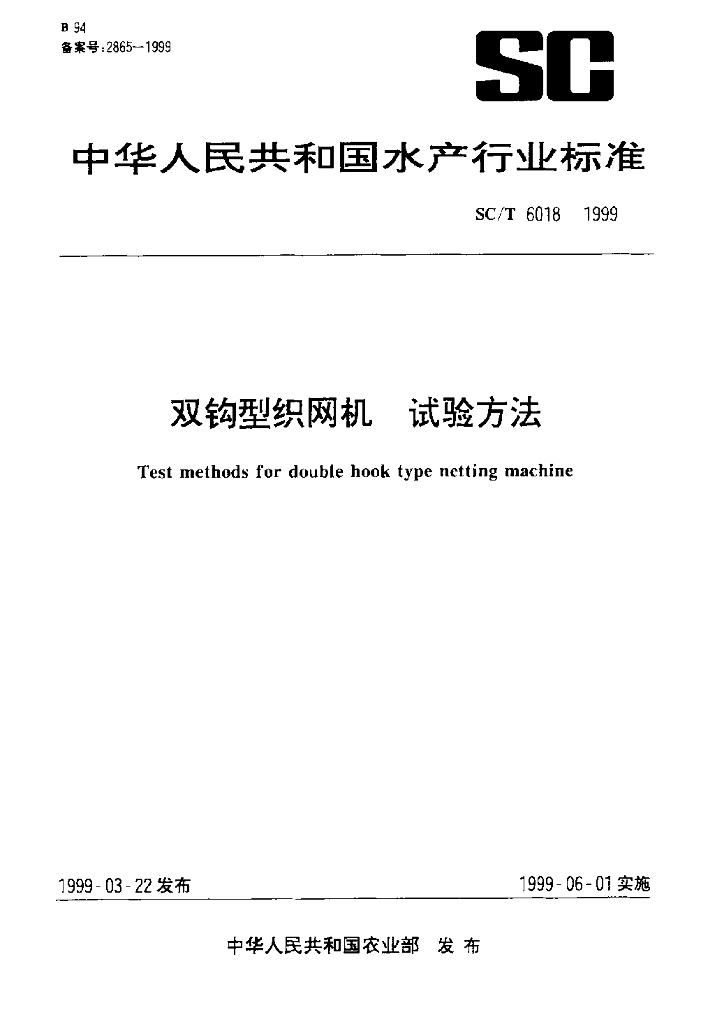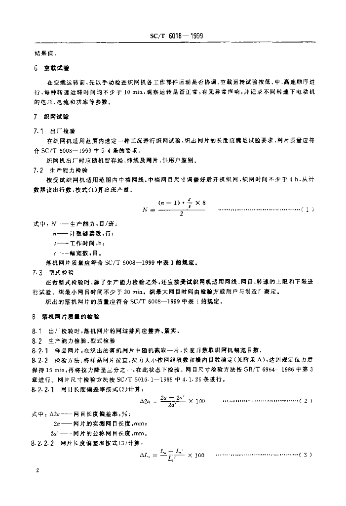 SC/T 6018-1999 双钩型织网机 试验方法