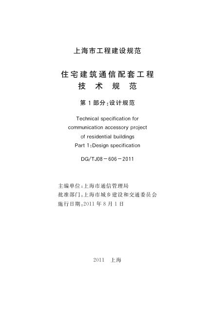 DG/TJ 08-606-2011 住宅建筑通信配套工程技术规范 第1部分 设计规范