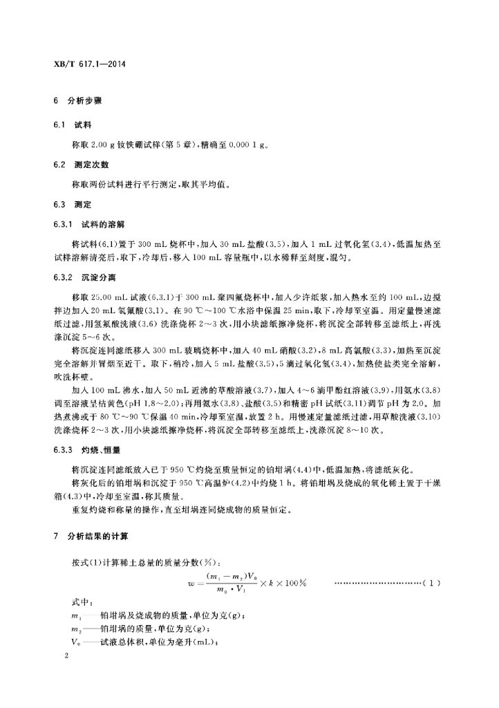 XB/T 617.1-2014 钕铁硼合金化学分析方法 第1部分:稀土总量的测定草酸盐重量法