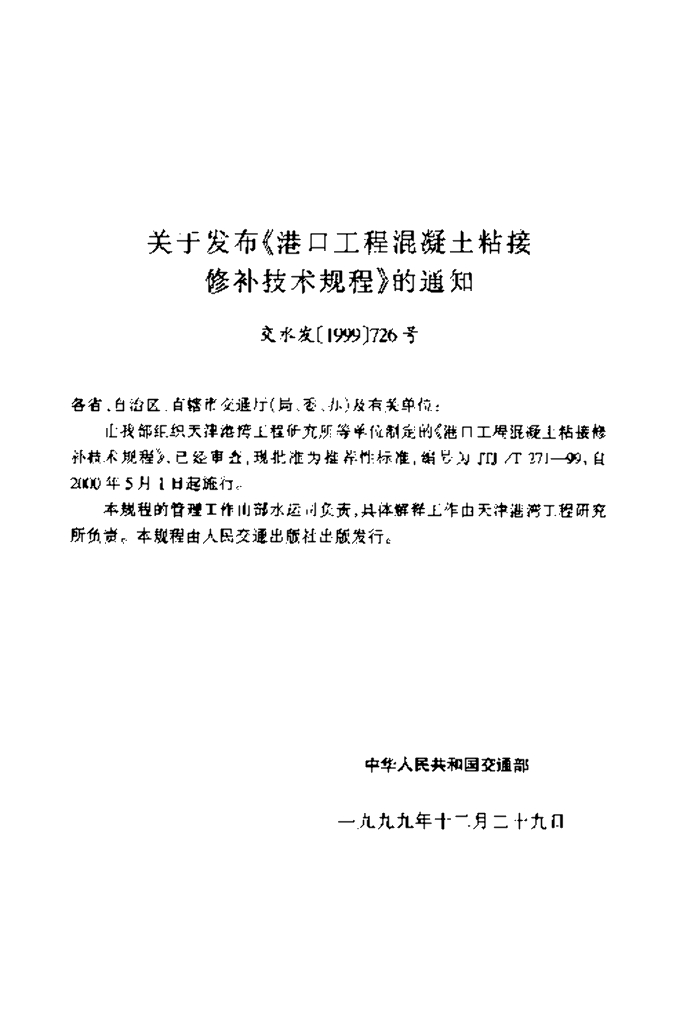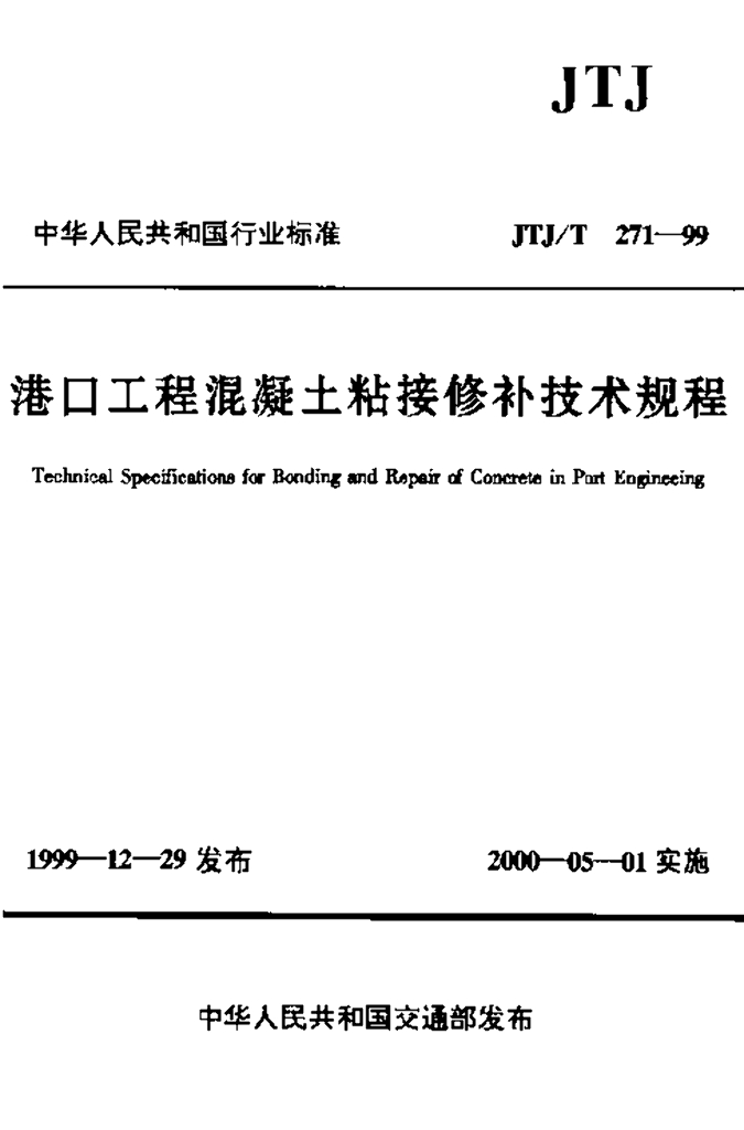JTJ/T 271-1999 港口工程混凝土粘接修补技术规程