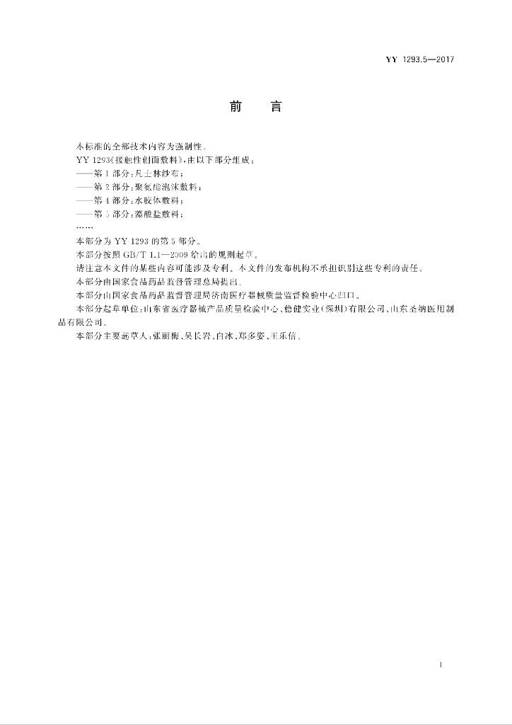 YY 1293.5-2017 接触性创面敷料 第5部分:藻酸盐敷料