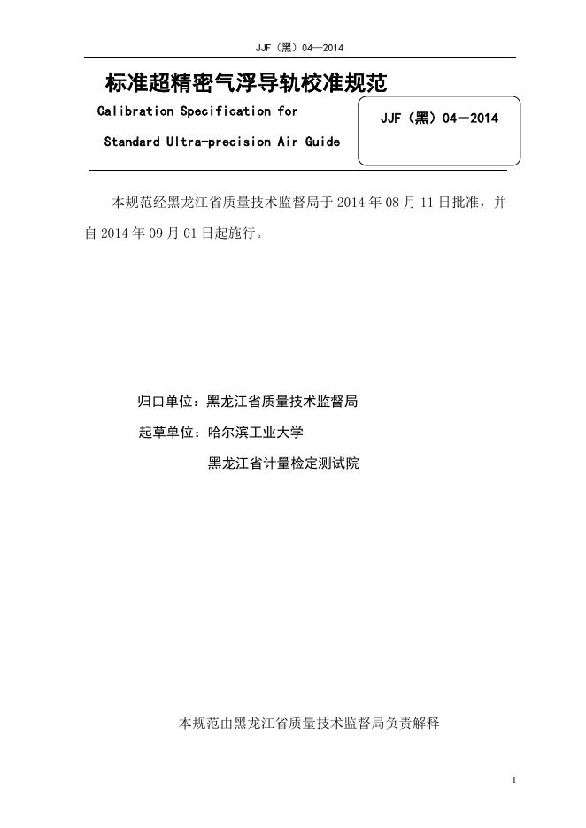 JJF(黑)04-2014 标准超精密气浮导轨校准规范