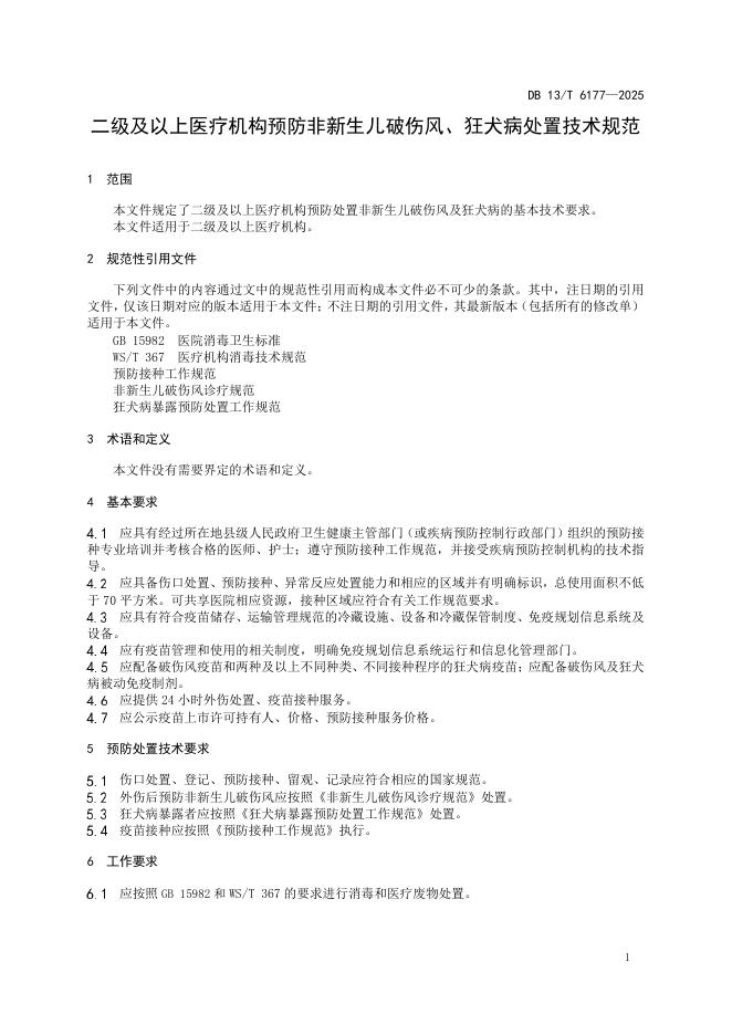 DB13/T 6177-2025 二级及以上医疗机构预防非新生儿破伤风、狂犬病处置技术规范