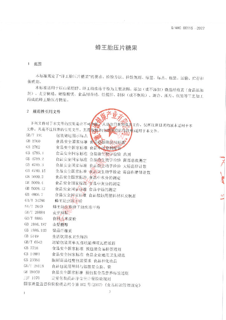 Q/AHC 0011S-2022 蜂王胎压片糖果
