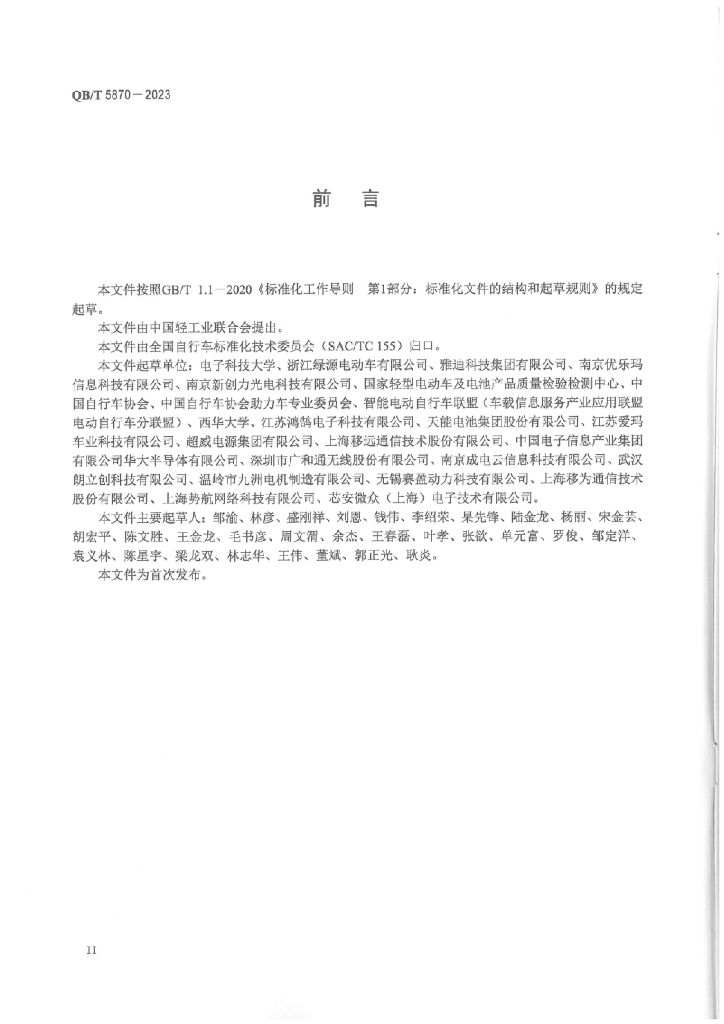 电子科技大学、浙江绿源电动车有限公司、雅迪科技集团有限公司、南京优乐玛信息科技有限公司、南京新创力光电科技有限公司、国家轻型电动车及电池产品质量检验检测中心、中国自行车协会、中国自行车协会助力车专业委员会、智能电动自行车联盟(车载信息服务产业应用联盟电动自行车分联盟)、西华大学、江苏鸿鹄电子科技有限公司、天能电池集团股份有限公司、江苏爱玛车业科技有限公司、超威电源集团有限公司、上海移远通信技术股份有限公司、中国电子信息产业集团有限公司华大半导体有限公司、深圳市广和通无线股份有限公司、南京成电云信息科技有限