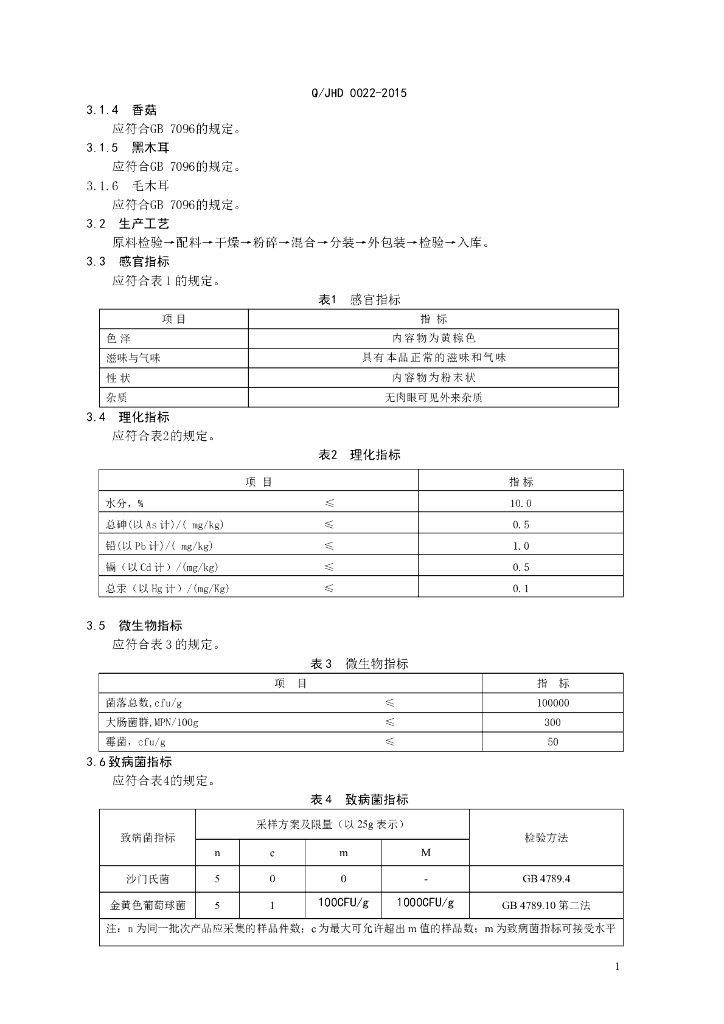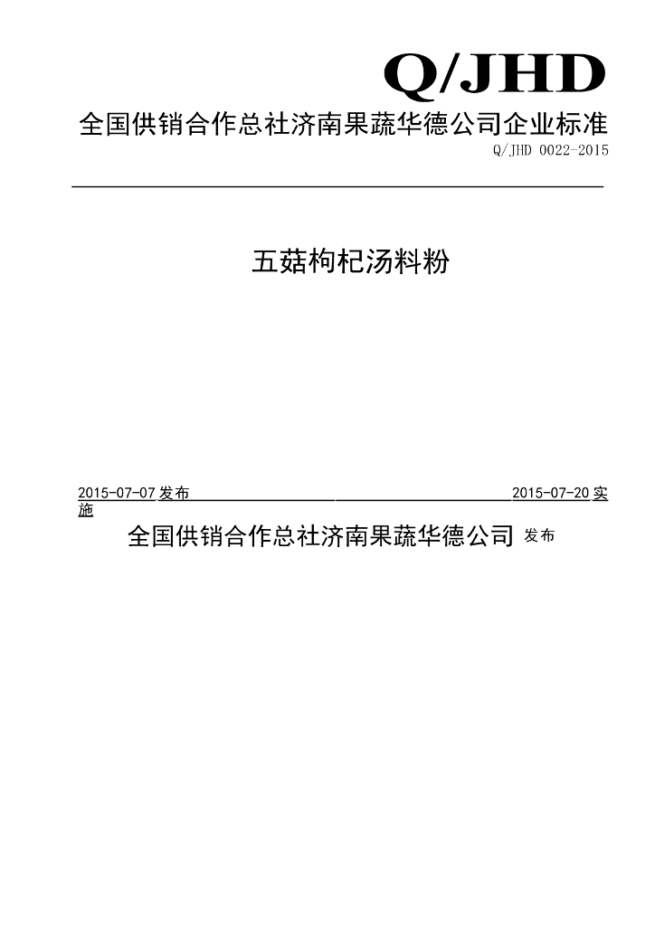 Q/JHD 0022-2015 全国供销合作总社济南果蔬华德公司 五菇枸杞汤料粉