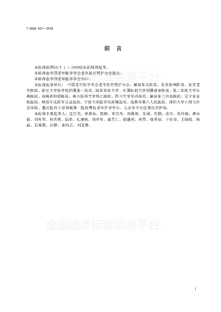 中国老年医学学会老年医疗照护分会、解放军总医院、北京协和医院、北京老年医院、浙江大学医学院附属第一医院、陆军军医大学、中国医科大学附属盛京医院、第二军医大学长海医院、湖南省肿瘤医院、南方医科大学珠江医院、四川大学华西医院、解放军兰州总医院、辽宁省金秋医院、解放军沈阳军区总医院、宁波大学医学院附属医院、成都市第八人民医院、深圳大学心理与社会学院、重庆医科大学附属第一医院青杠老年护养中心、北京市丰台区康助养护院