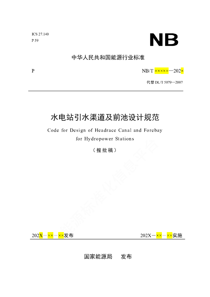 NB/T 11090-2023 水电站引水渠道及前池设计规范