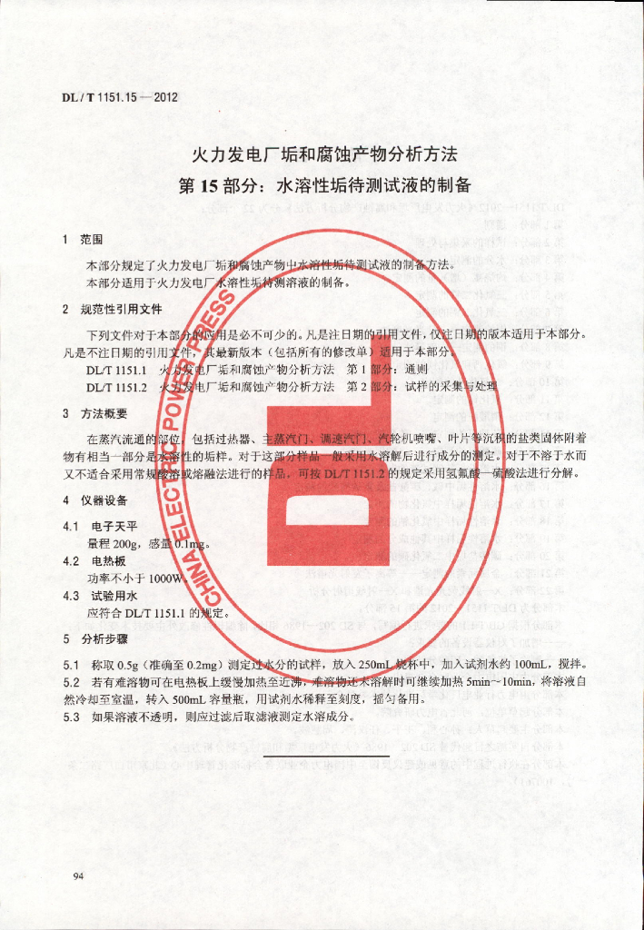 DL/T 1151.15-2012 火力发电厂垢和腐蚀产物分析方法 第15部分:水溶性垢待测试液的制备