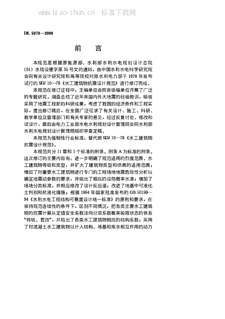 DL 5073-2000 水工建筑物抗震设计规范