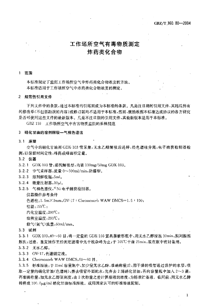 GBZ/T 160.80-2004 工作场所空气有毒物质测定 炸药类化合物