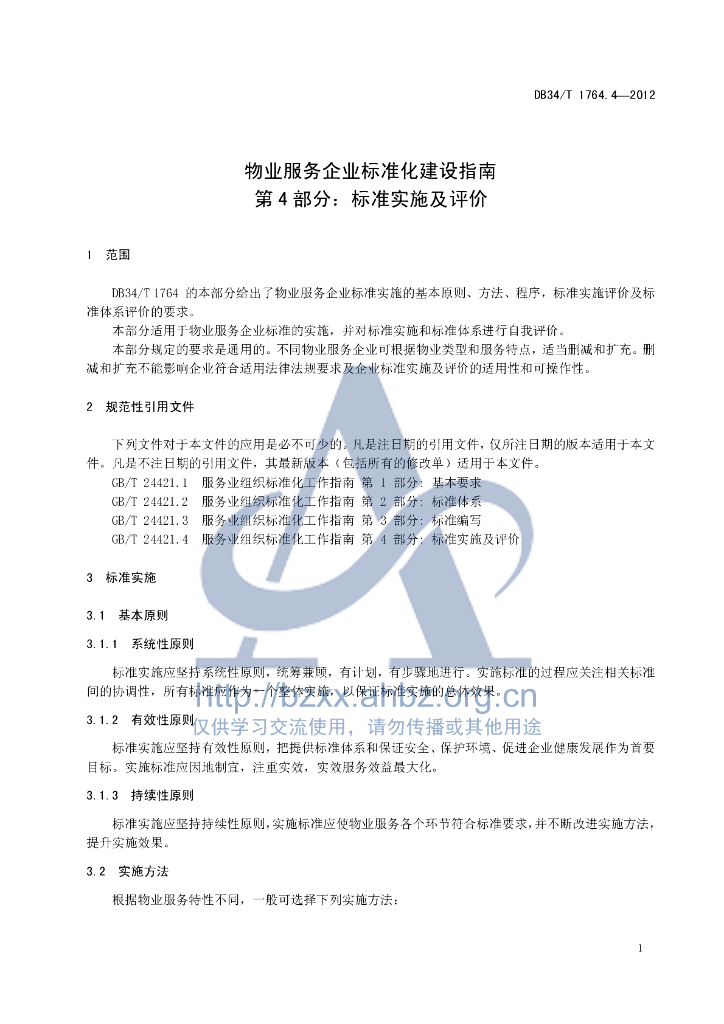 DB34/T 1764.4-2012 物业服务企业标准化建设指南第4部分:标准实施及评价