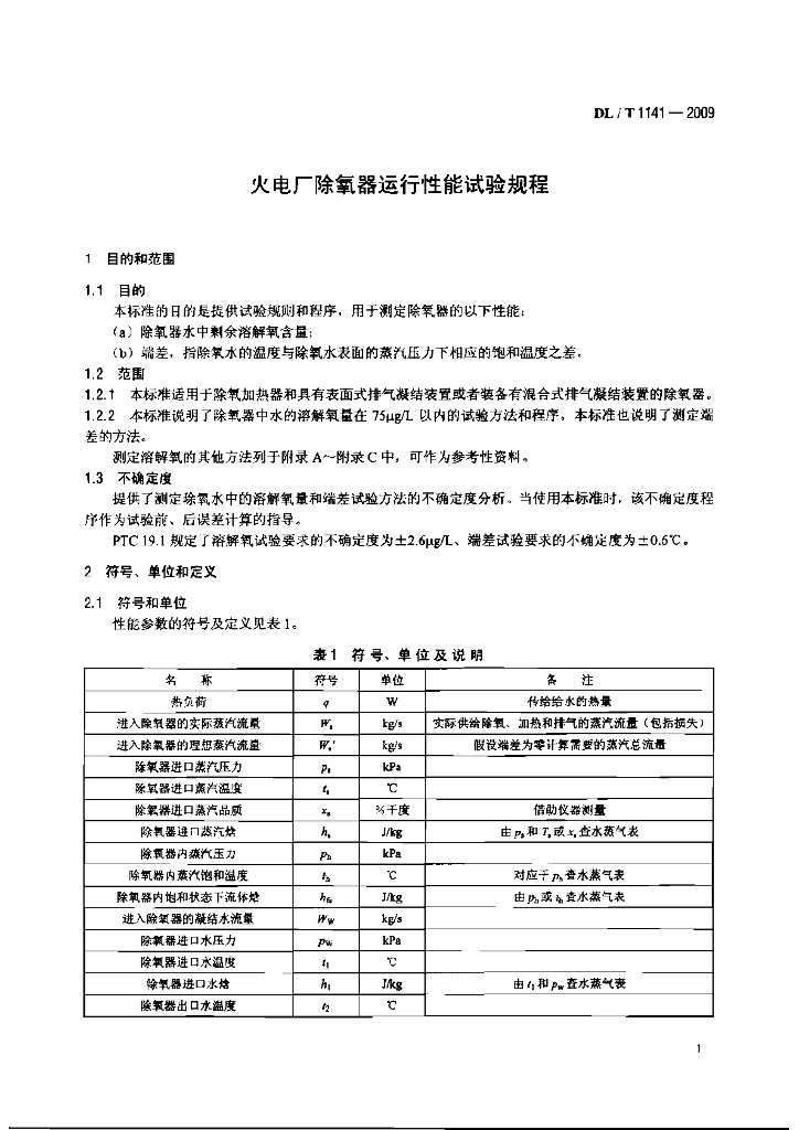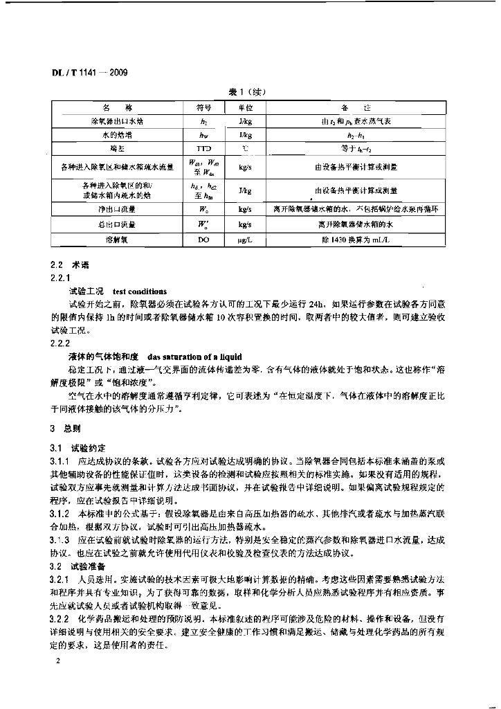 DL/T 1141-2009 火电厂除氧器运行性能试验规程