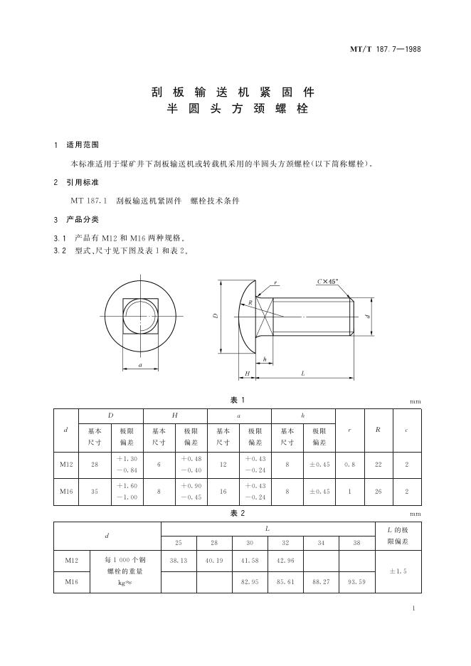 MT/T 187.7-1988 刮板输送机紧固件 半圆头方颈螺栓