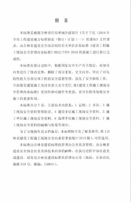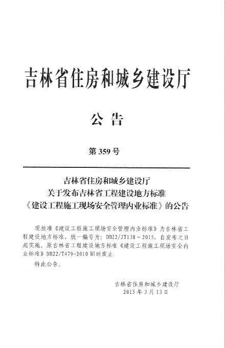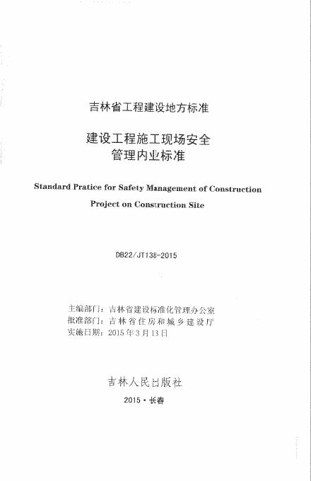 DB22/JT 138-2015 建设工程施工现场安全管理内业标准(已废止)