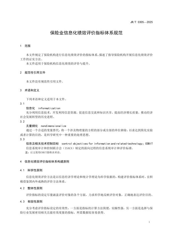 JR/T 0305-2025 保险业信息化绩效评价指标体系规范