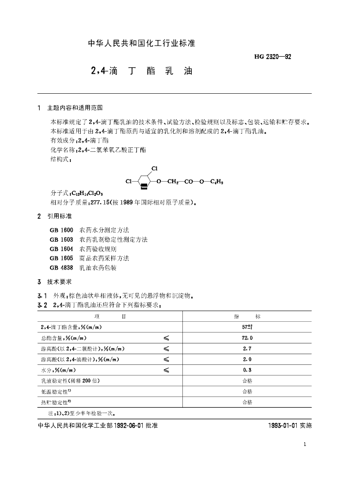 HG 2320-1992 2,4-滴丁酯乳油