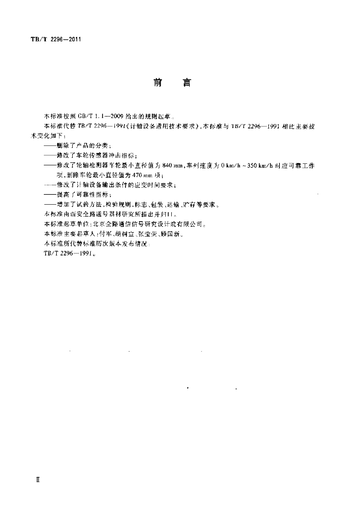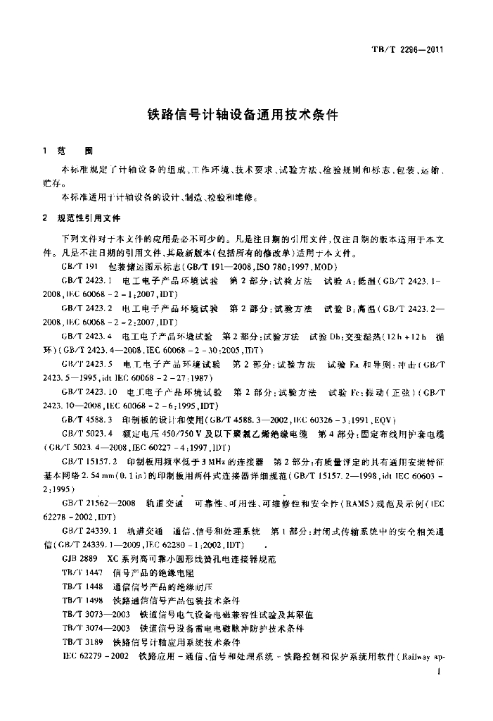 TB/T 2296-2011 铁路信号计轴设备通用技术条件