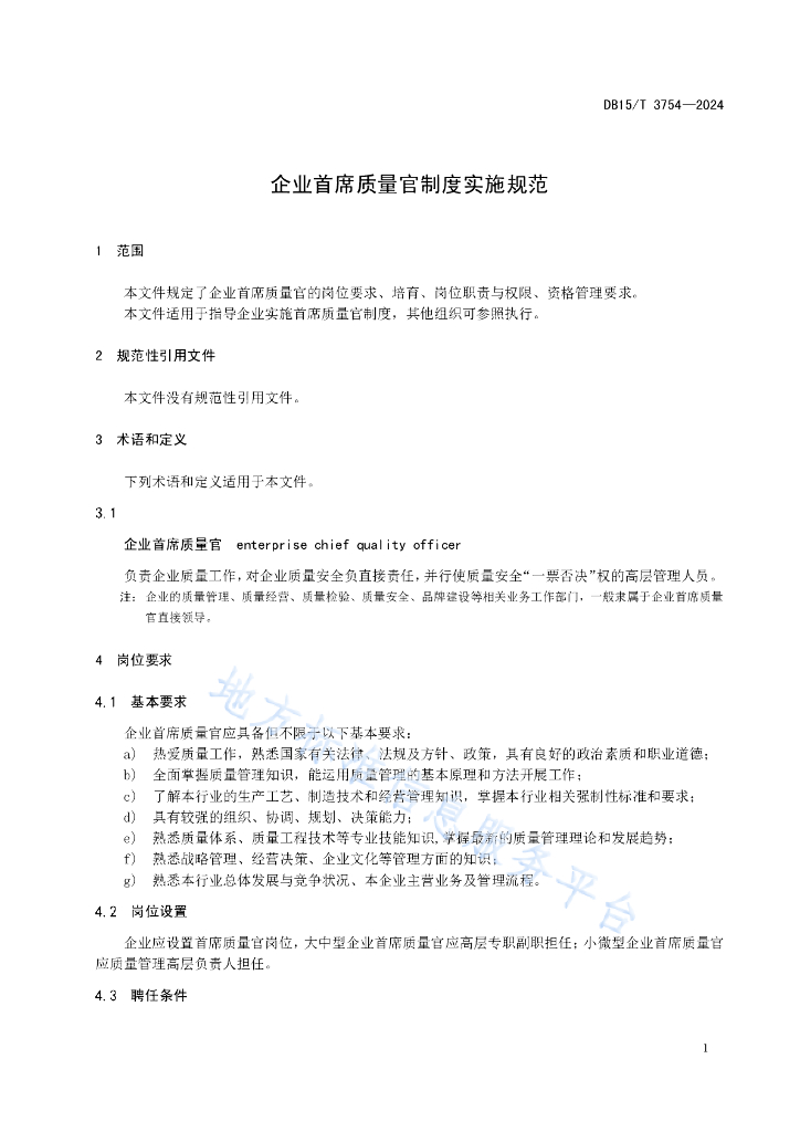 DB15/T 3754-2024 企业首席质量官制度实施规范