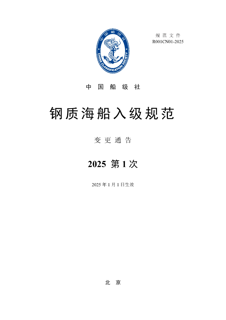 中国船级社CCS:钢质海船入级规范-变更通告(2025年第1次)