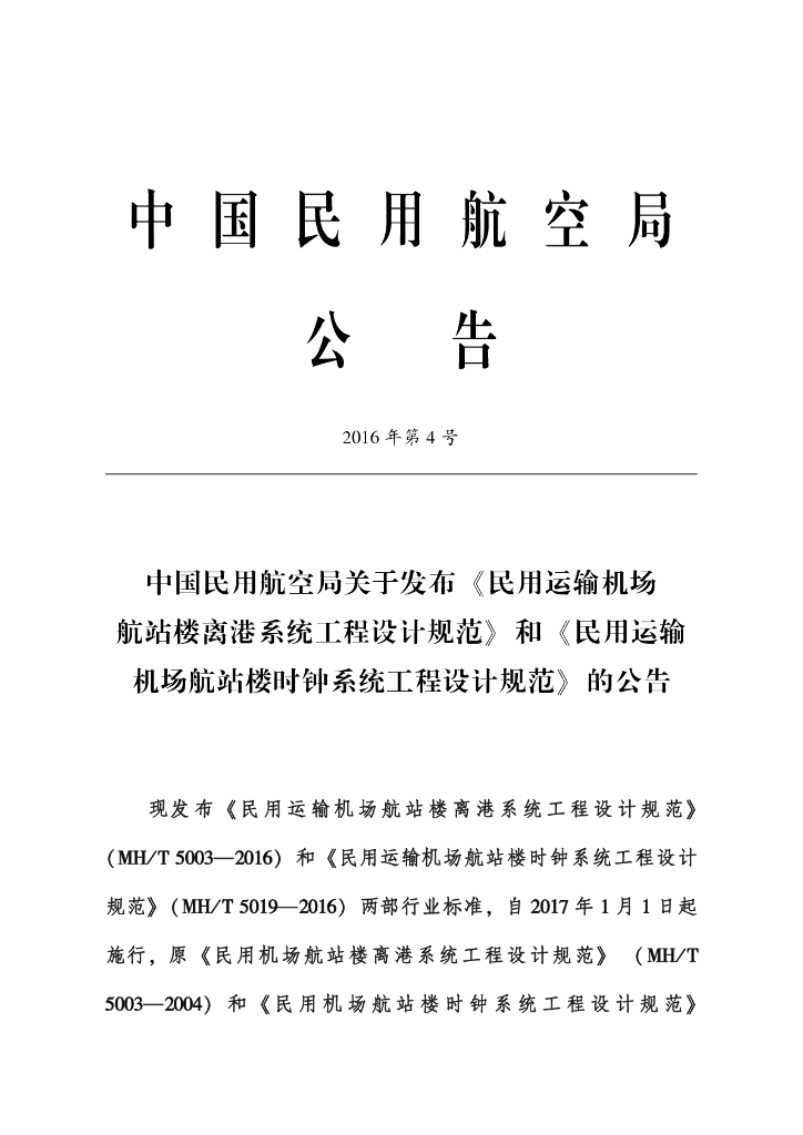 MH/T 5019-2016 民用运输机场航站楼时钟系统工程设计规范