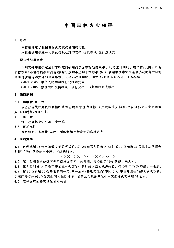 LY/T 1627-2005 中国森林火灾编码