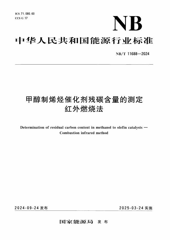 NB/T 11688-2024 甲醇制烯烃催化剂残碳含量的测定 红外燃烧法