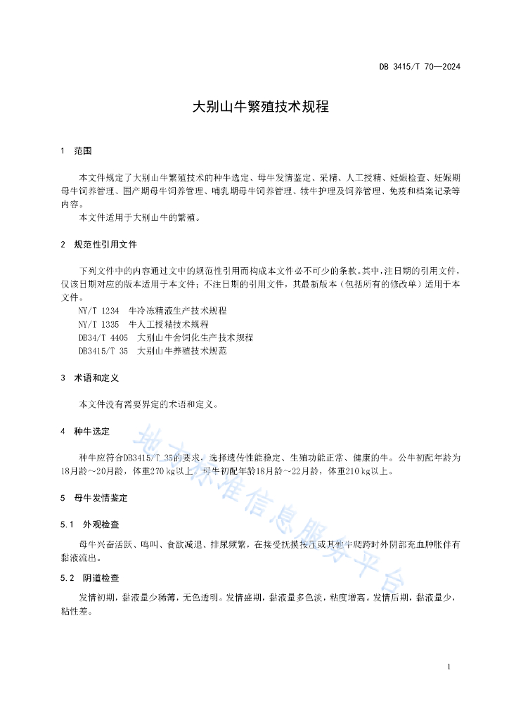 DB3415/T 70-2024 大别山牛繁殖技术规程