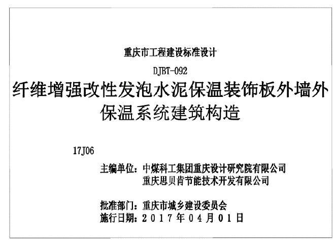 渝17J06 纤维增强改性发泡水泥保温装饰板外墙外保温系统建筑构造图集(DJBT-092)