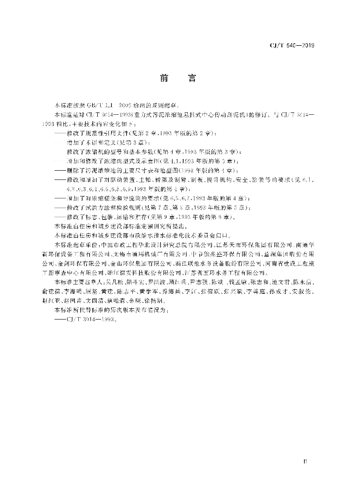 CJ/T 540-2019 重力式污泥浓缩池悬挂式中心传动浓缩机