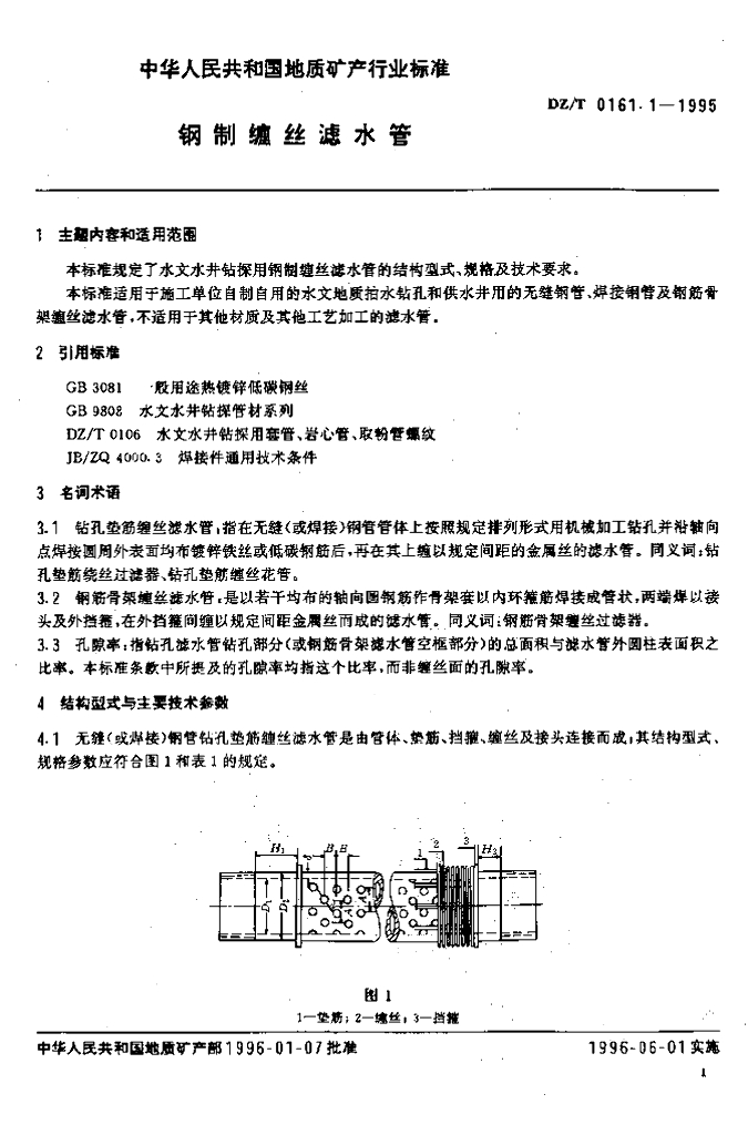 DZ/T 0161.1-1995 钢制缠丝滤水管