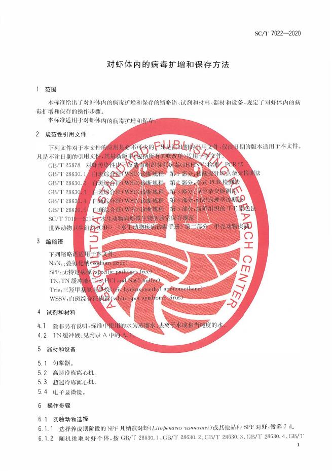 SC/T 7022-2020 对虾体内的病毒扩增和保存方法