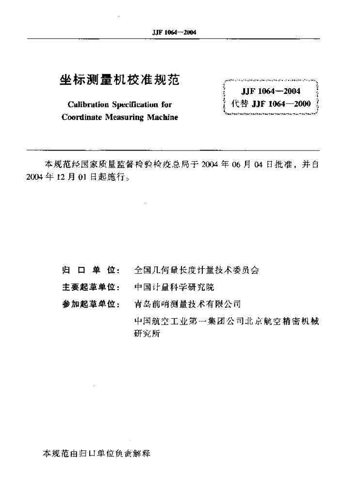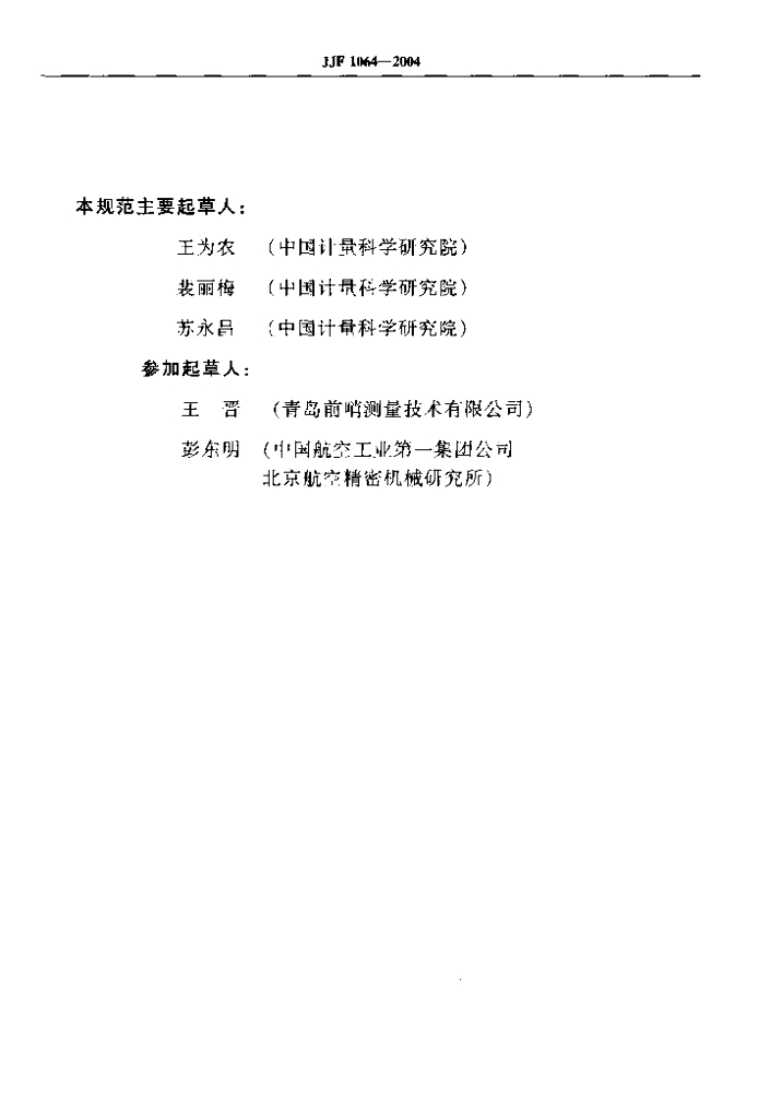 王为农(中国计量科学研究院)、裴丽梅(中国计量科学研究院)、苏永昌(中国计量科学研究院)、王晋(青岛前哨测量技术有限公司)、彭东明(中国航空工业第一集团公司北京航空精密机械研究所)