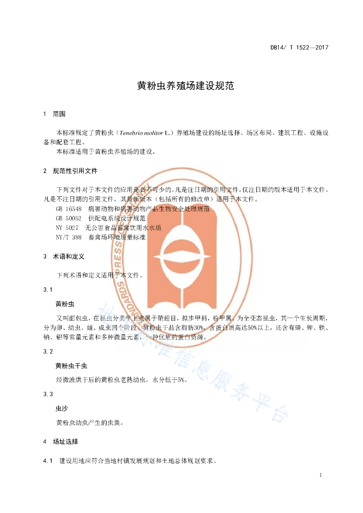 DB14/T 1522-2017 黄粉虫养殖场建设规范