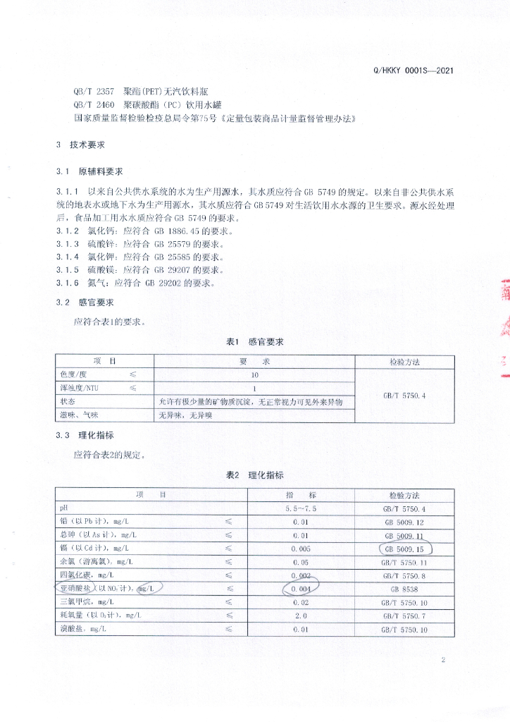 Q/HKKY 0001S-2021 瓶(桶)包装饮用水