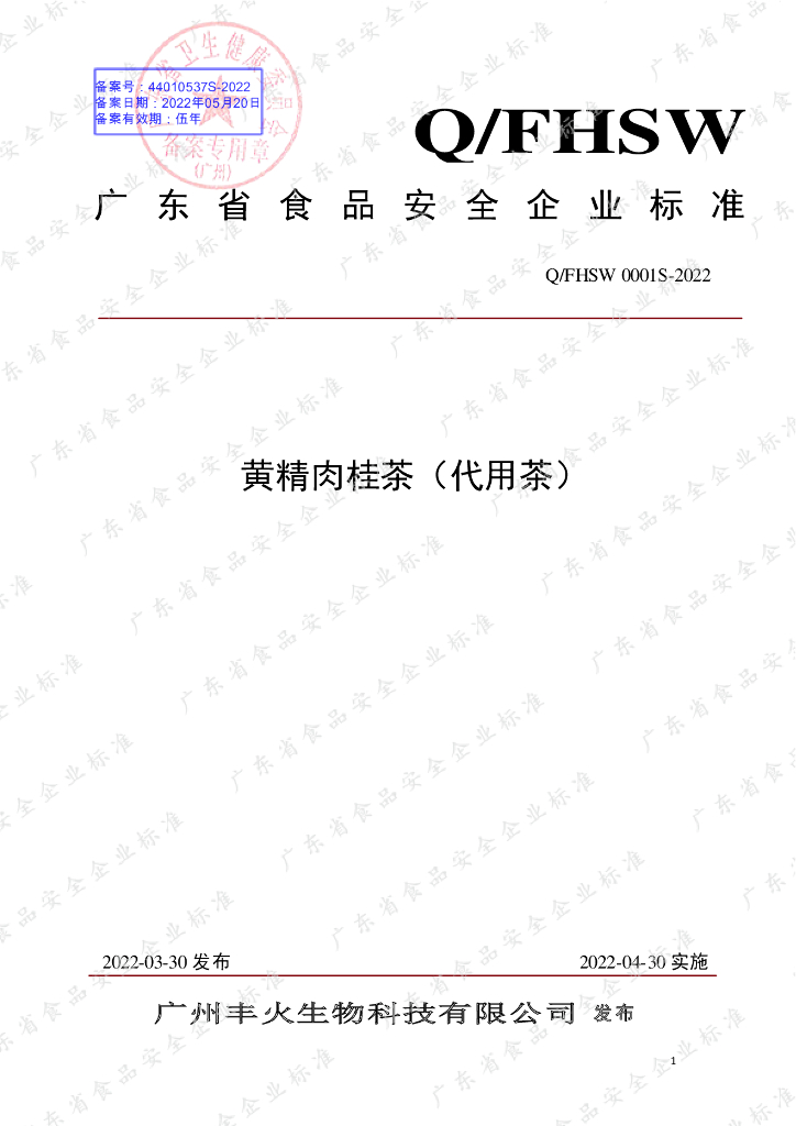 Q/FHSW 0001S-2022 黄精肉桂茶(代用茶)