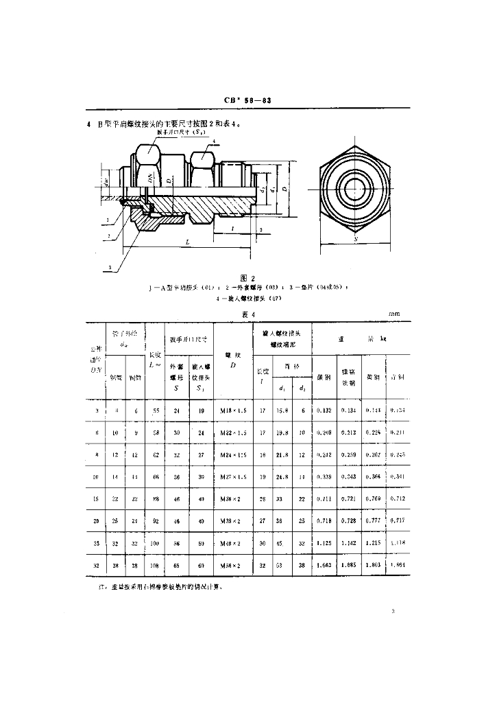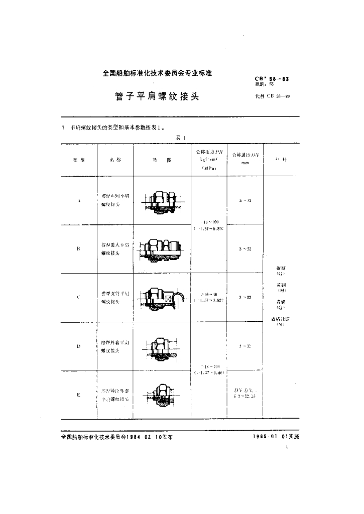 CB 56-1983 管子平肩螺纹接头