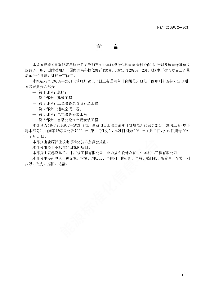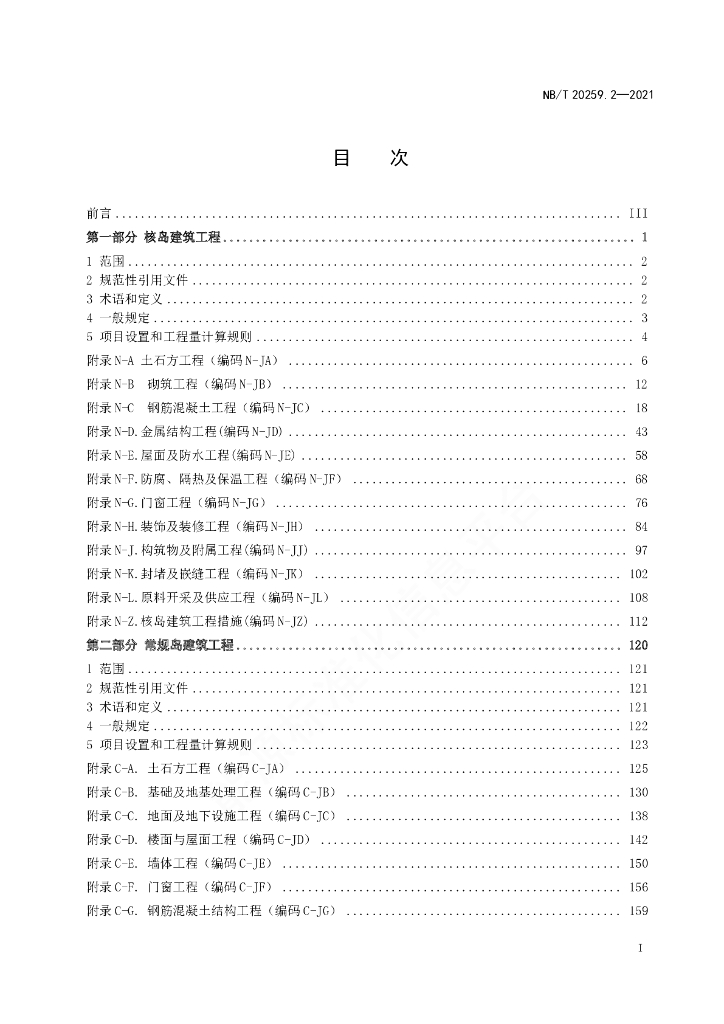 NB/T 20259.2-2021 核电厂建设项目工程量清单计价规范 第2部分:建筑工程