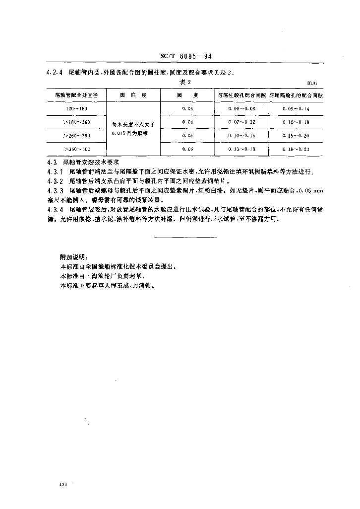 SC/T 8085-1994 渔船尾柱毂孔与尾轴管的技术要求