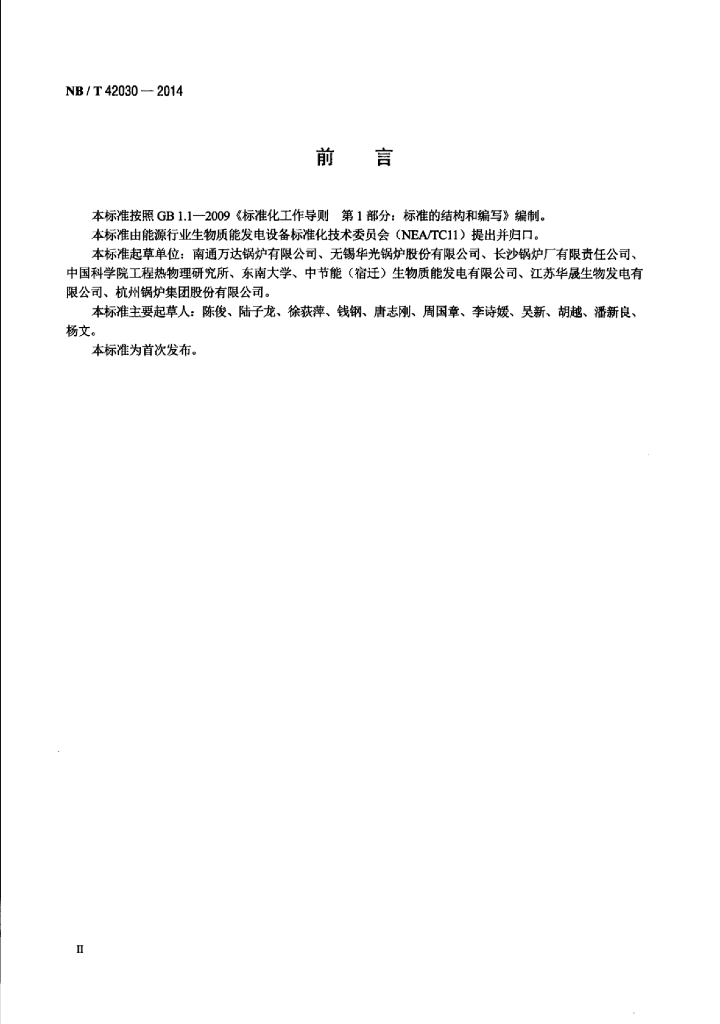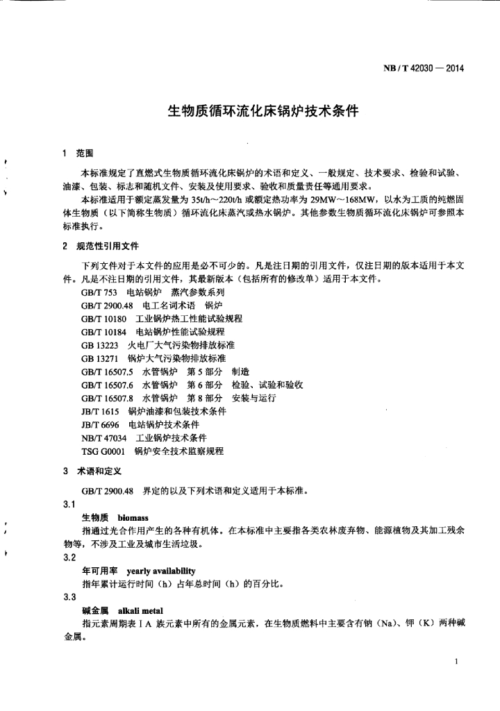 NB/T 42030-2014 生物质循环流化床锅炉技术条件