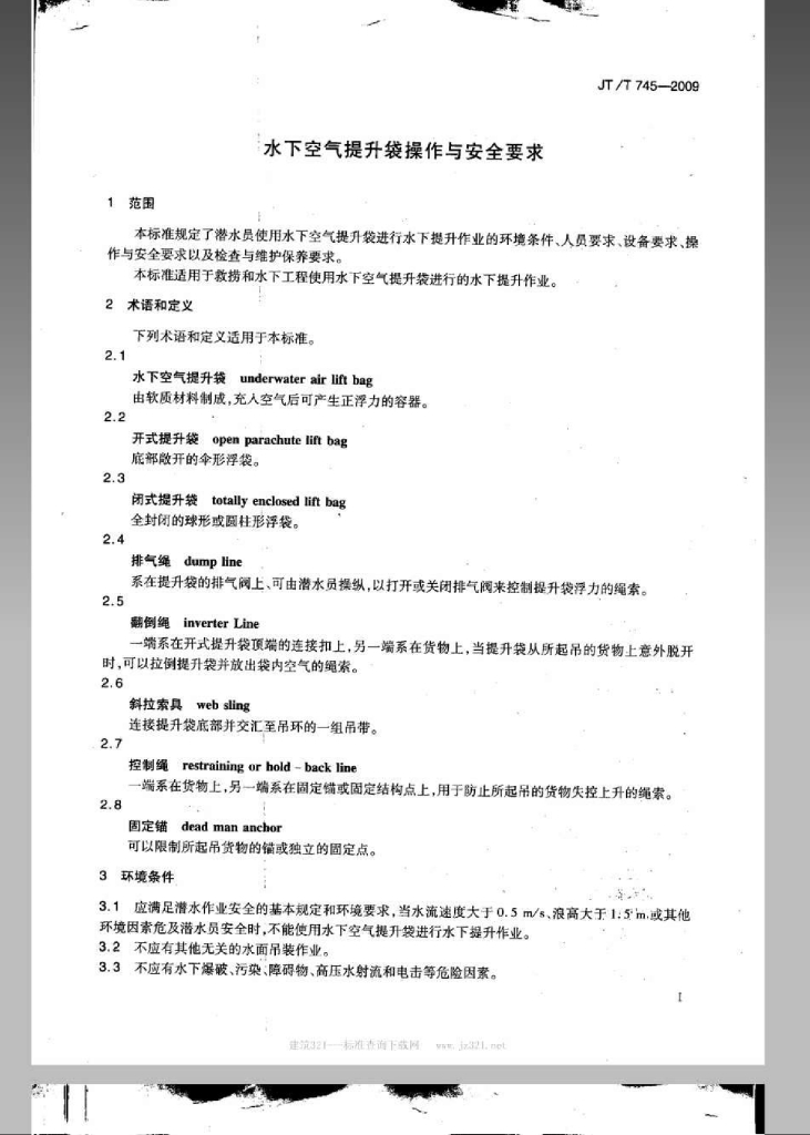 JT/T 745-2009 水下空气提升袋操作与安全要求