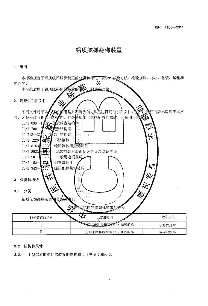 CB/T 4186-2011 铝质舷梯翻梯装置