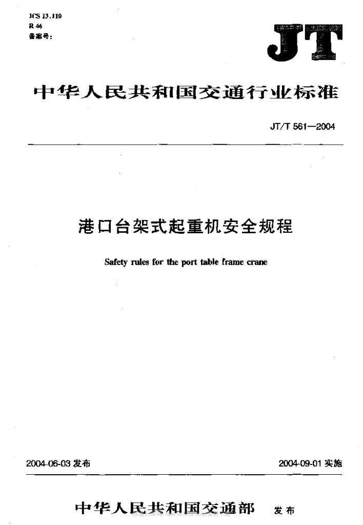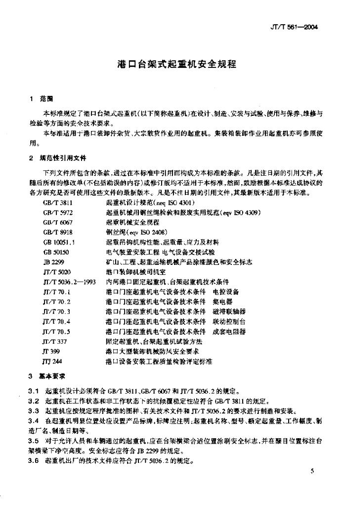 JT/T 561-2004 港口台架式起重机安全规程