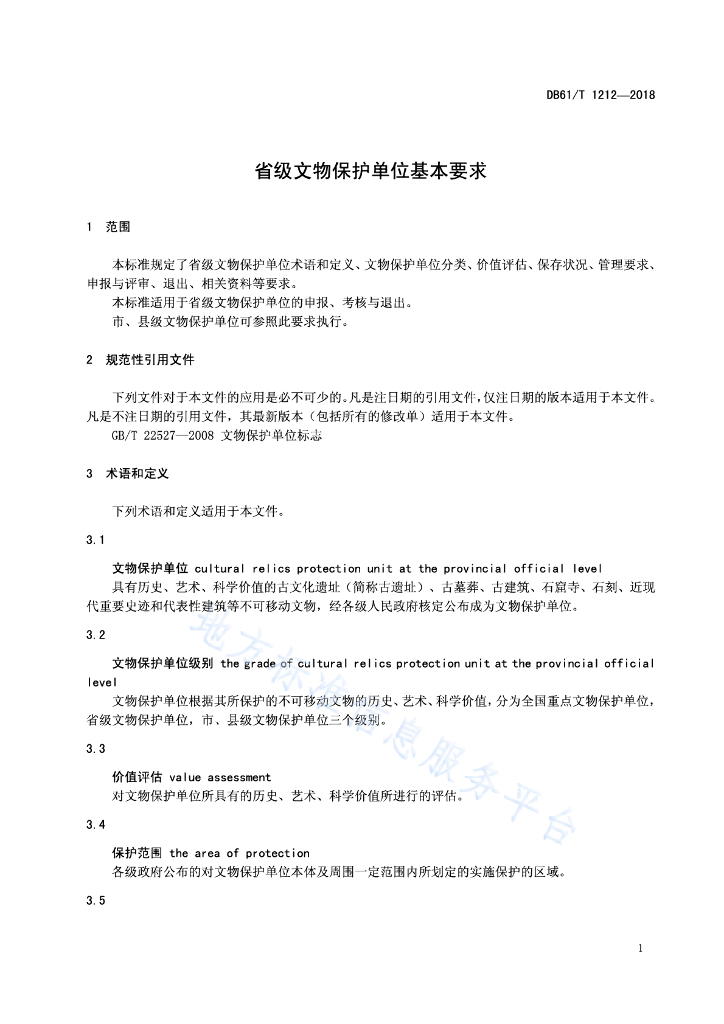 DB61/T 1212-2018 省级文物保护单位基本要求