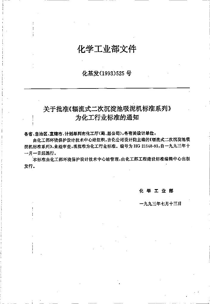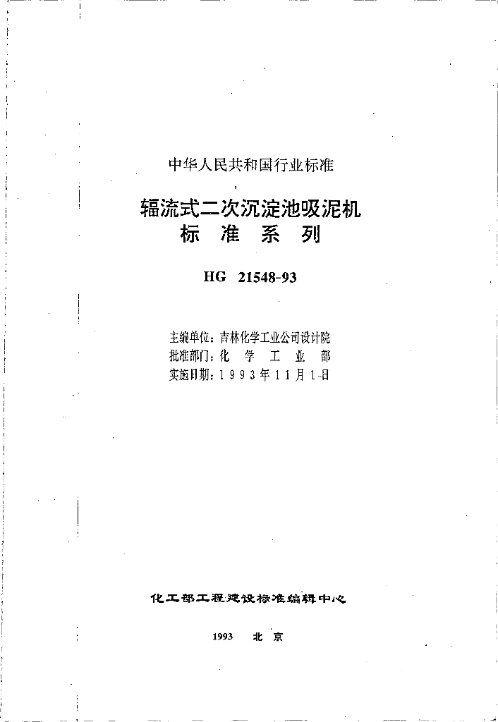 HG/T 21548-1993 辐流式二次沉淀池吸泥机标准系列