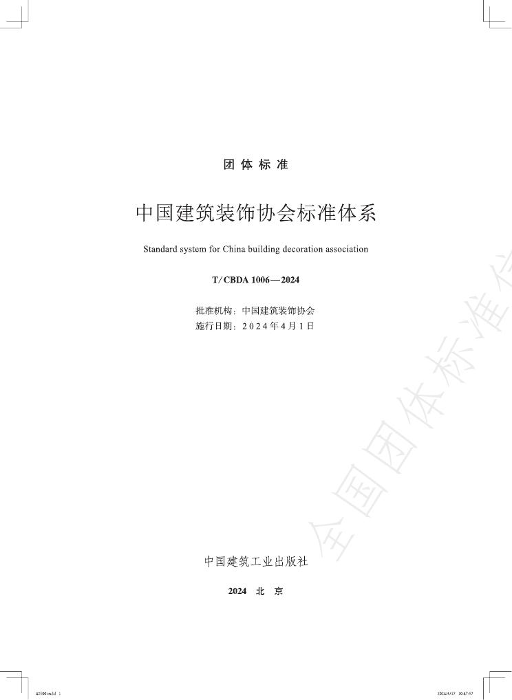 T/CBDA 1006-2024 中国建造装饰协会标准体系