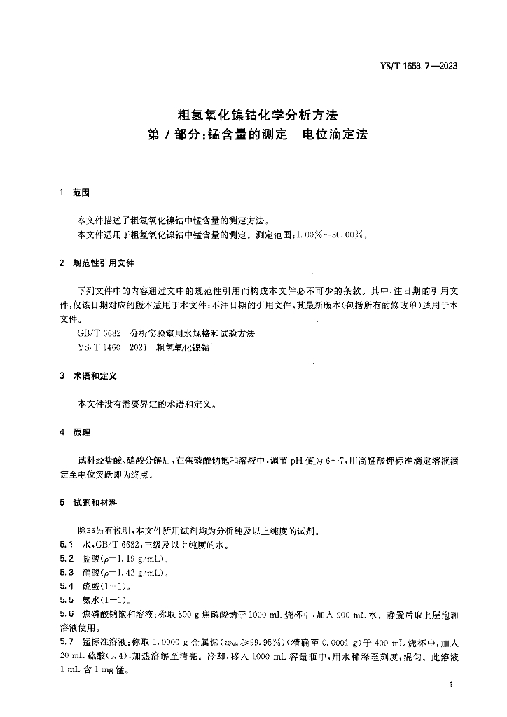 YS/T 1658.7-2023 粗氢氧化镍钴化学分析方法 第7部分:锰含量的测定 电位滴定法