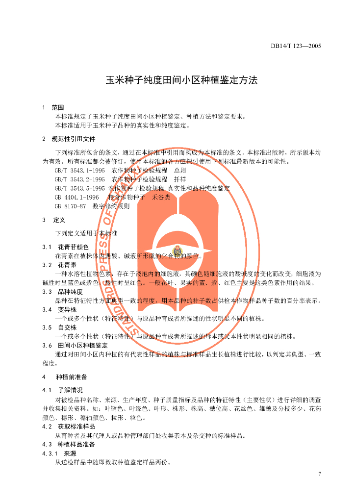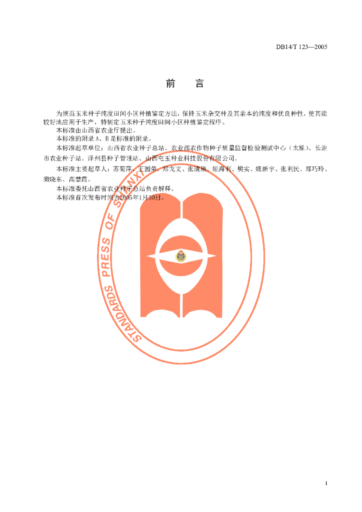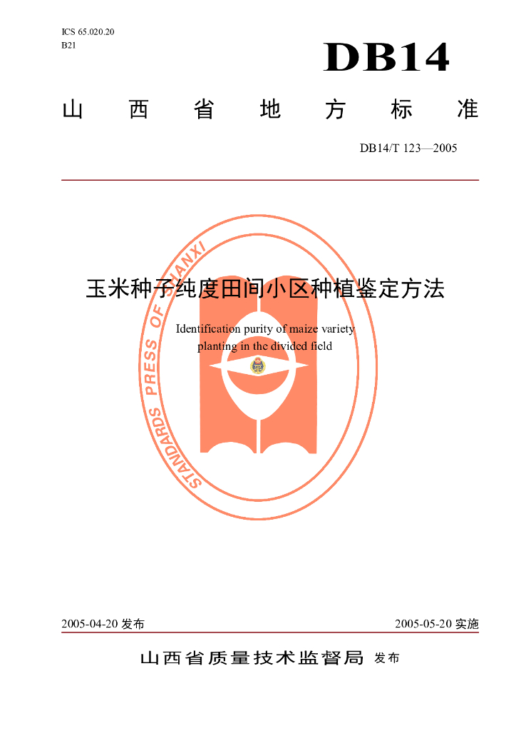DB14/T 123-2005 玉米种子纯度田间小区种植鉴定方法
