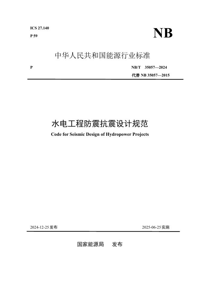 NB/T 35057-2024 水电工程防震抗震设计规范